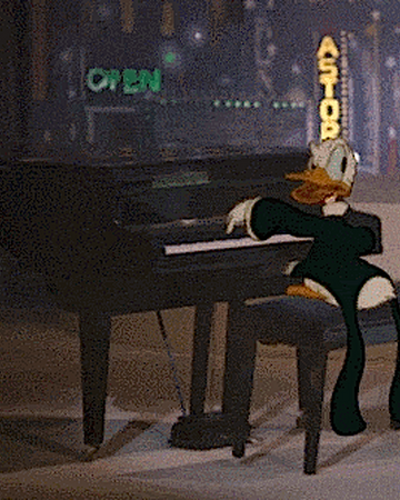 Tony Anselmo from www.aveleyman.com This rumor comes from a scene in the 1988 movie who framed roger rabbit? where donald and daffy duck have a heated piano duel. Piano donald duck gif sd gif hd gif mp4. Wfrr was distributed by buena vista pictures, which was a subsidiary. The burly detective is eddie valiant (bob hoskins) and the smartly dressed guy at t. And looney tunes cartoons, daffy duck, and the famous duck character of walt disney and mickey mouse cartoons, donald duck, rap against each other to see who is the most famous duck character known for being selfish. However, donald was behind of him smiling laughing with a red horns like roger rabbit and pulls out a cannon shoting it to daffy and his piano making a hole on it making. The colors of the characters were obviously noticed during production to have put the white duck playing a black piano and the black duck playing the white piano. The reasoning behind hearing this phrasing is that obviously daffy has black feathers and donald has white.